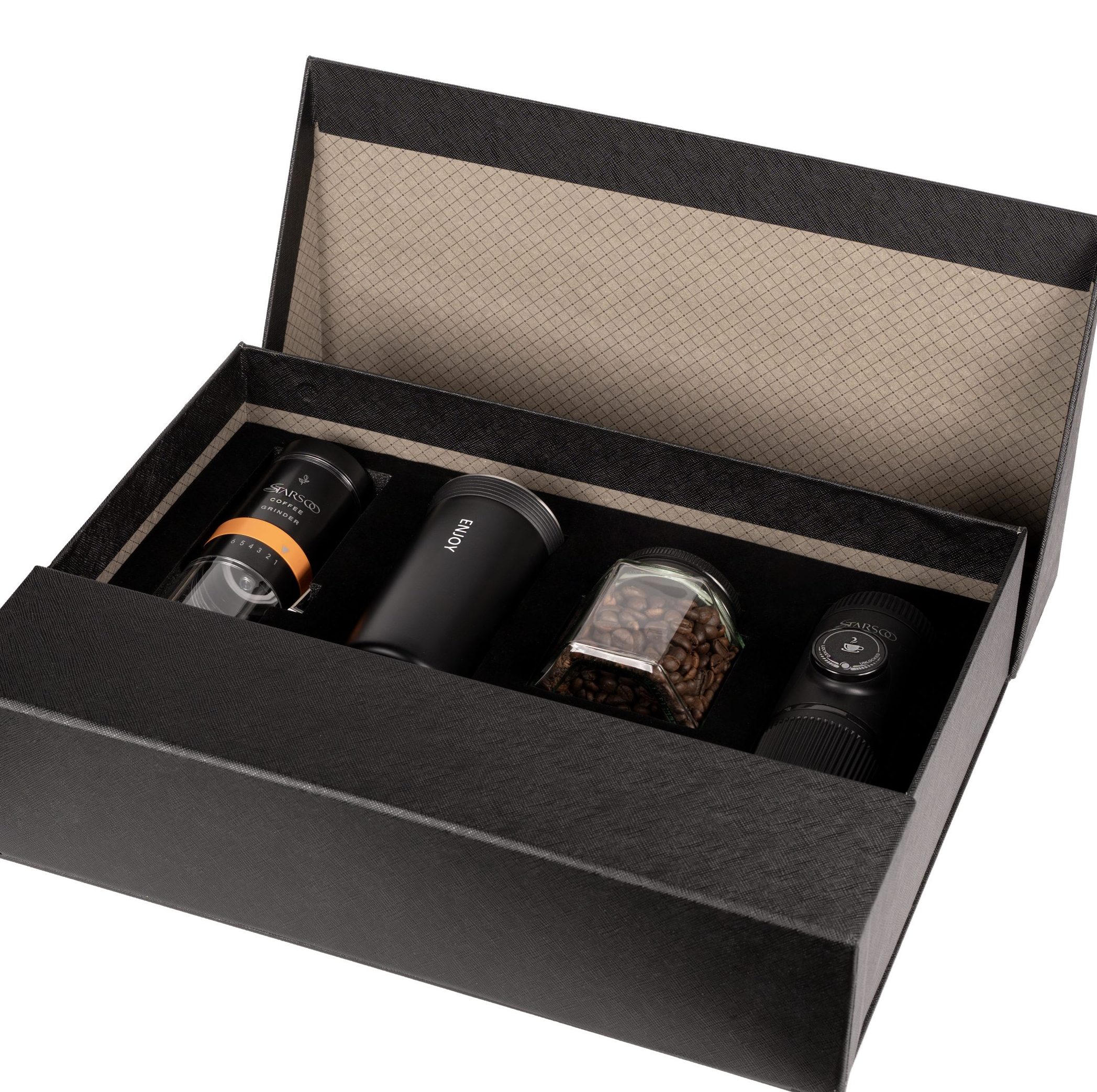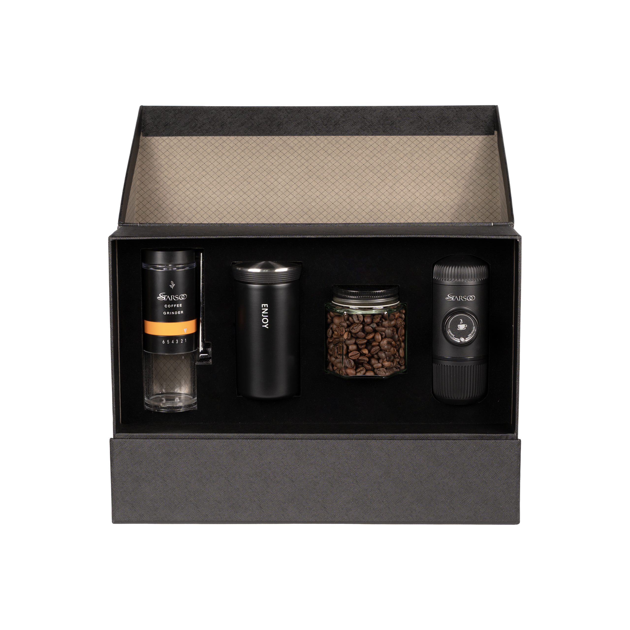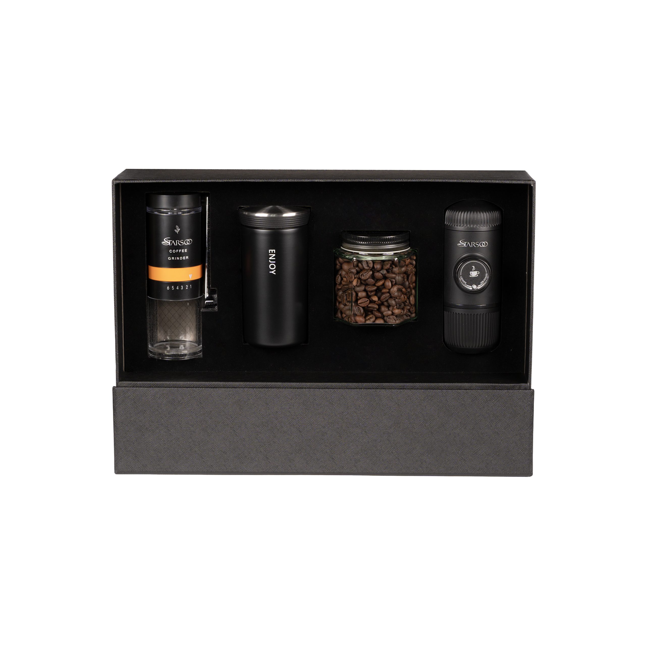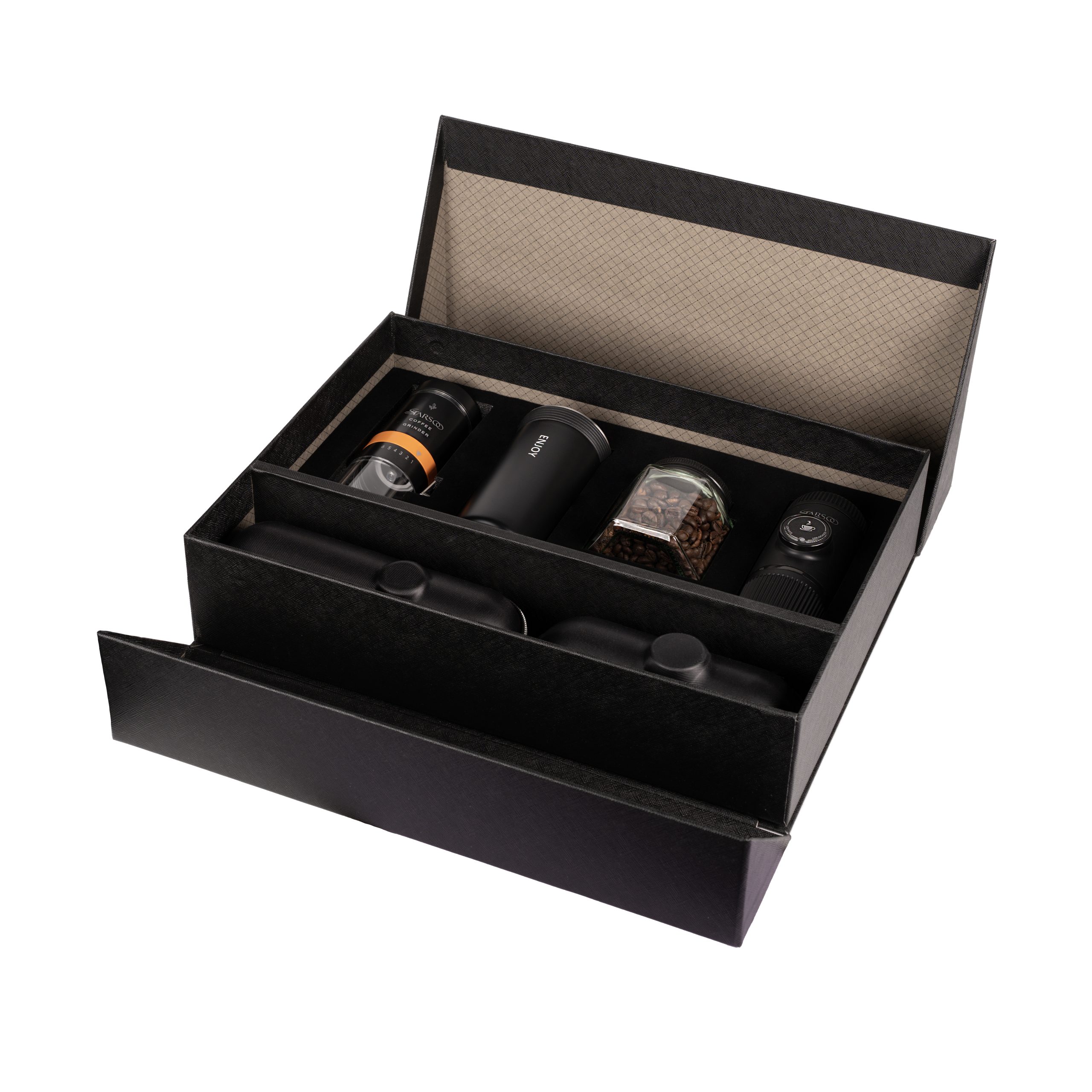 از آسیاب قهوه گرفته تا تهیه اسپرسو و استفاده از تراول ماگ، این پک تمامی مراحل تهیه قهوه را بهشکلی کامل و لذتبخش ارائه میدهد.