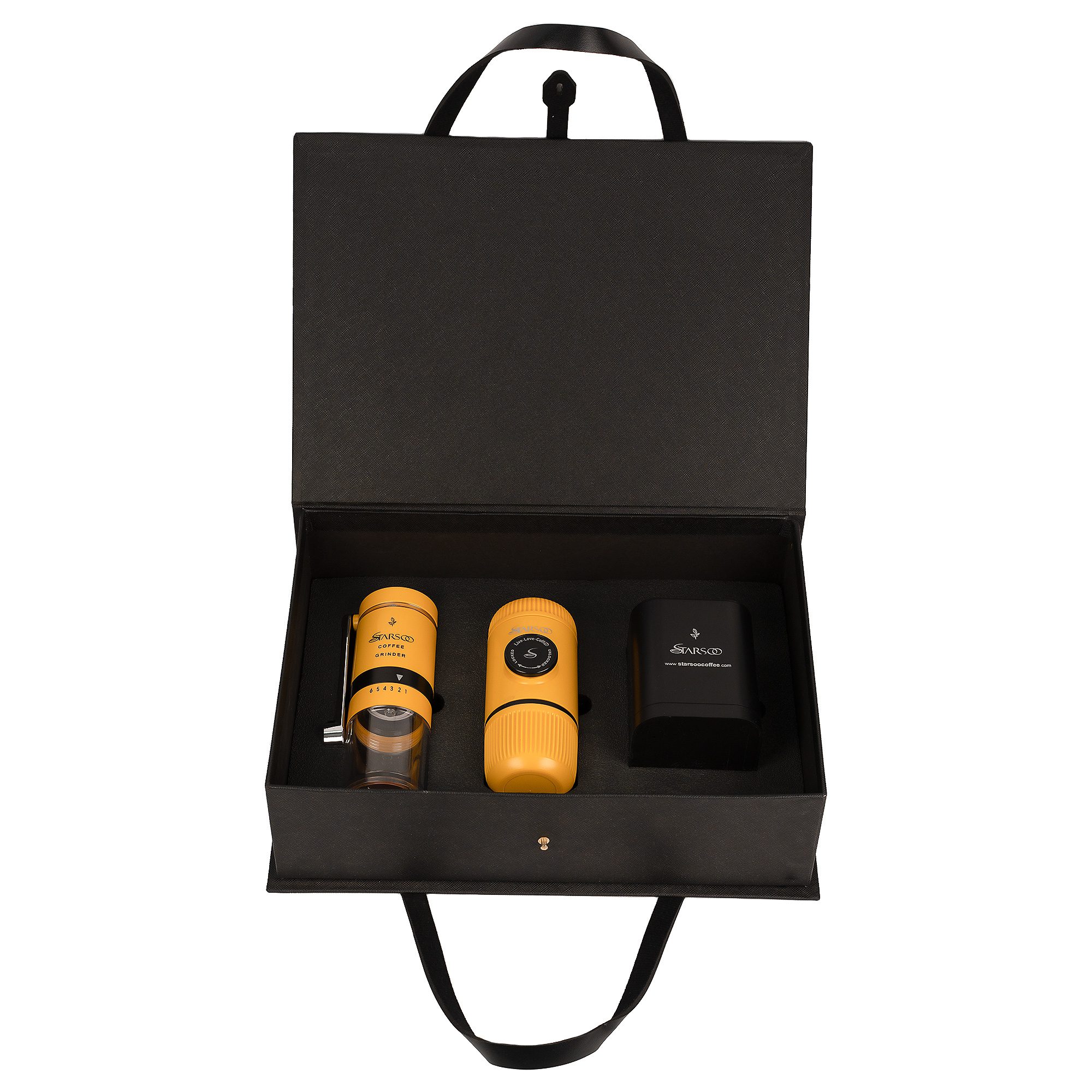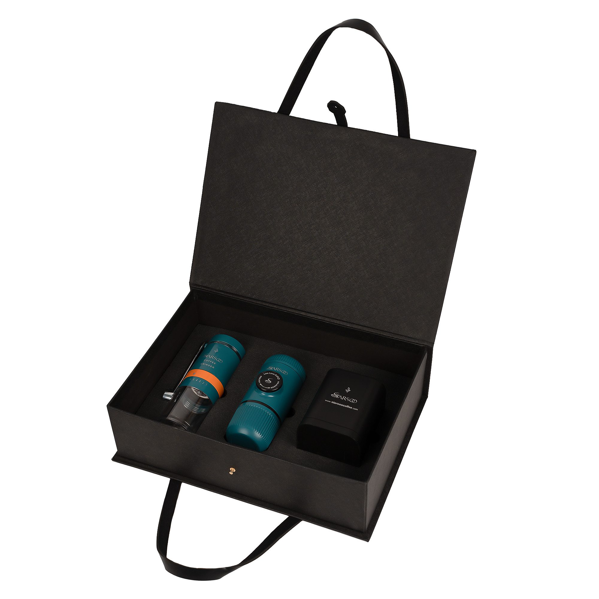 قلب تپنده این پک هدیه خاص، قهوه ساز مسافرتی با طراحی مهندسیشده است. سبک، مقاوم و قابل حمل؛ مناسب برای استفاده در محل کار، سفر یا خانه.