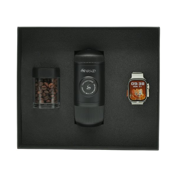 در کنار لذت قهوه نوشیدن، داشتن ابزاری برای مدیریت زمان روزانه نیز اهمیت دارد. ساعت هوشمند موجود در این پک با قابلیتهای اندازهگیری فعالیت، بررسی اعلانها و طراحی شیک، مکملی ایدهآل برای سبک زندگی مدرن است. این ساعت برای افرادی که هم به ظاهر اهمیت میدهند و هم به بهرهوری شخصی، انتخابی هوشمندانه به حساب میآید.
